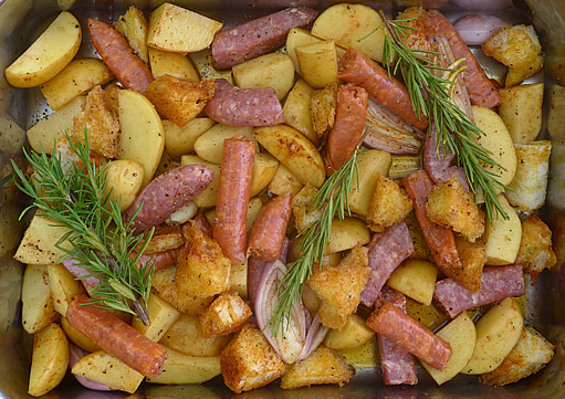Giovannis Würste aus dem Ofen – mit Kartoffeln, Brot, Knoblauch und Rosmarin » Giovannis Würste 2