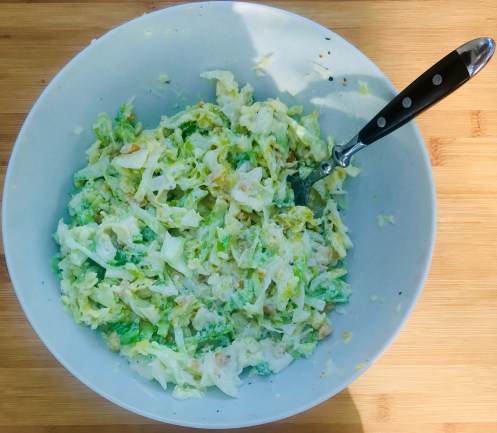 Roher Wirzsalat mit Joghurt-Spanischnüssli-Sauce