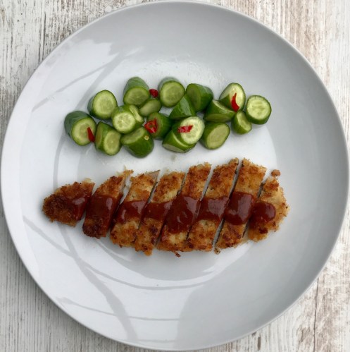 Tonkatsu Knusperschnitzel mit japanischem Gurkensalat