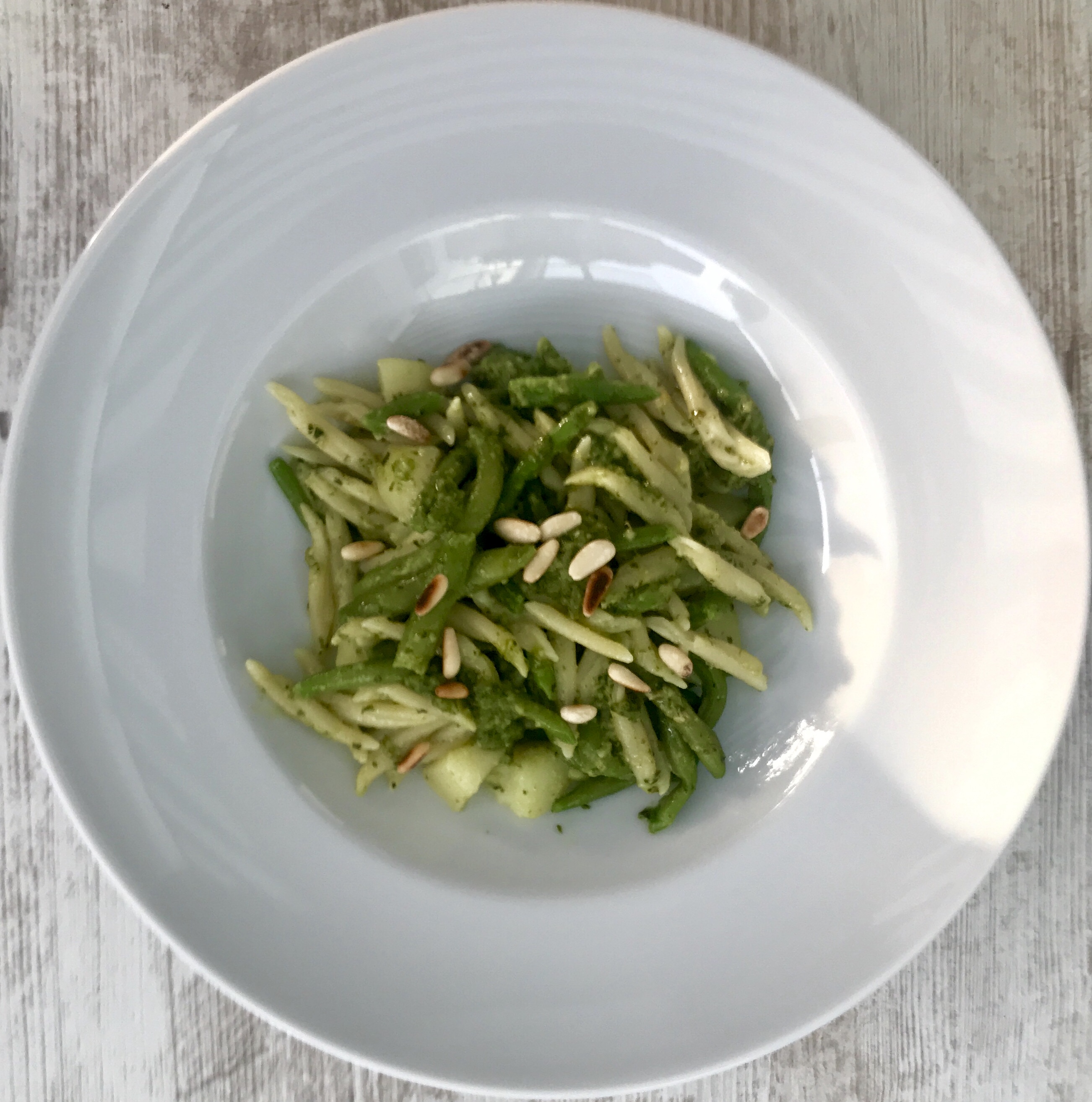 Pasta und Pesto sind ein unschlagbares Paar. In Ligurien, von wo diese Spezialität ursprünglich stammt, ist es üblich, die Basilikumsauce nicht nur mit Pasta, sondern auch noch mit grünen Bohnen und Kartoffeln zu kombinieren – eine perfekte Kombination, die geschmacklich kaum zu übertreffen ist.